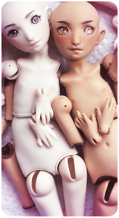 Souris is made from my body II little minion doll molds, a small little sister doll to my earlier dolls, and so far I've only sold a few dolls like her. She is also assembled with steal springs instead of elastic, the fifth doll I've ever made with springs.